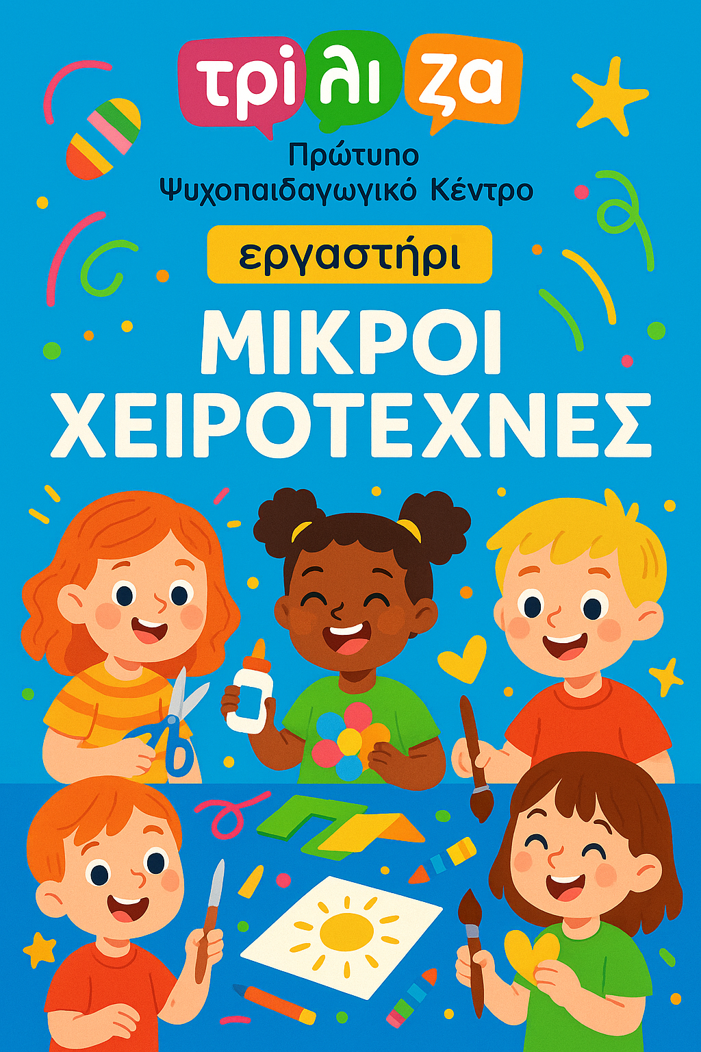 Διαφορετικά καλλιτεχνικά εργαστήρια με κύριο στόχο την ανάπτυξη δεξιοτήτων μέσα από δημιουργικές δραστηριότητες όπου τα παιδιά έρχονται σε επαφή με διάφορα υλικά, αποκτούν νέες γνώσεις ,βελτιώνουν βασικές αναπτυξιακές δεξιότητες και γεμίζουν ποιοτικά τον ελεύθερο χρόνο τους!